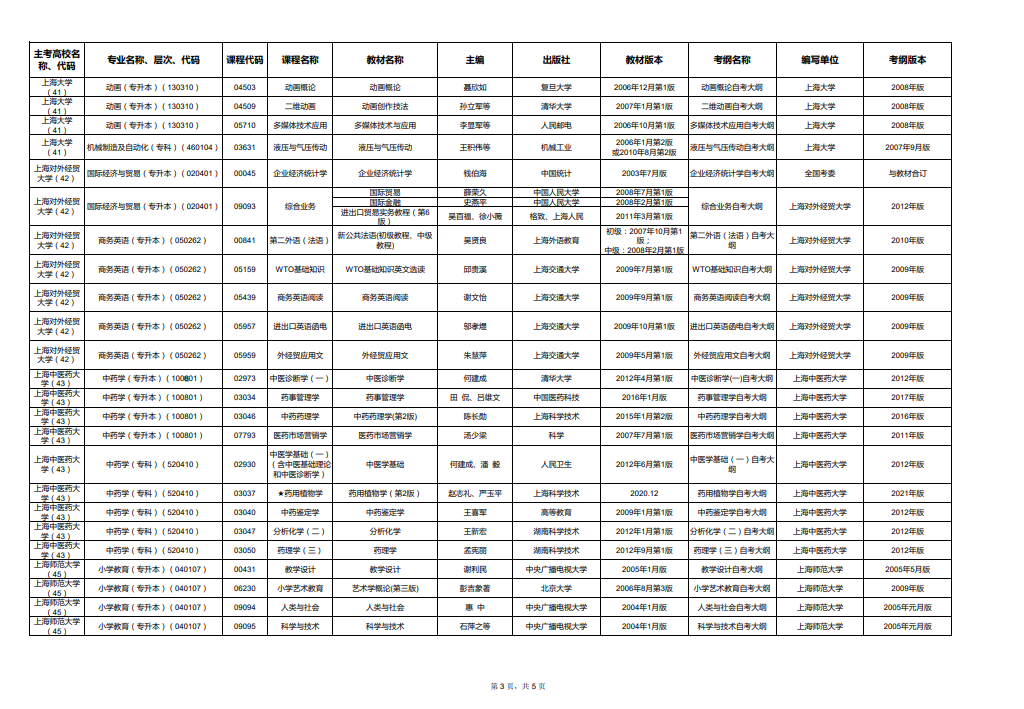 【结尾】以上就是2022年4月上海自考教材大纲书目表的简要介绍,如想获取更多内容记得查看:自考本科、自考专业、自考复习备考、自学考试成绩查询等相关资讯。